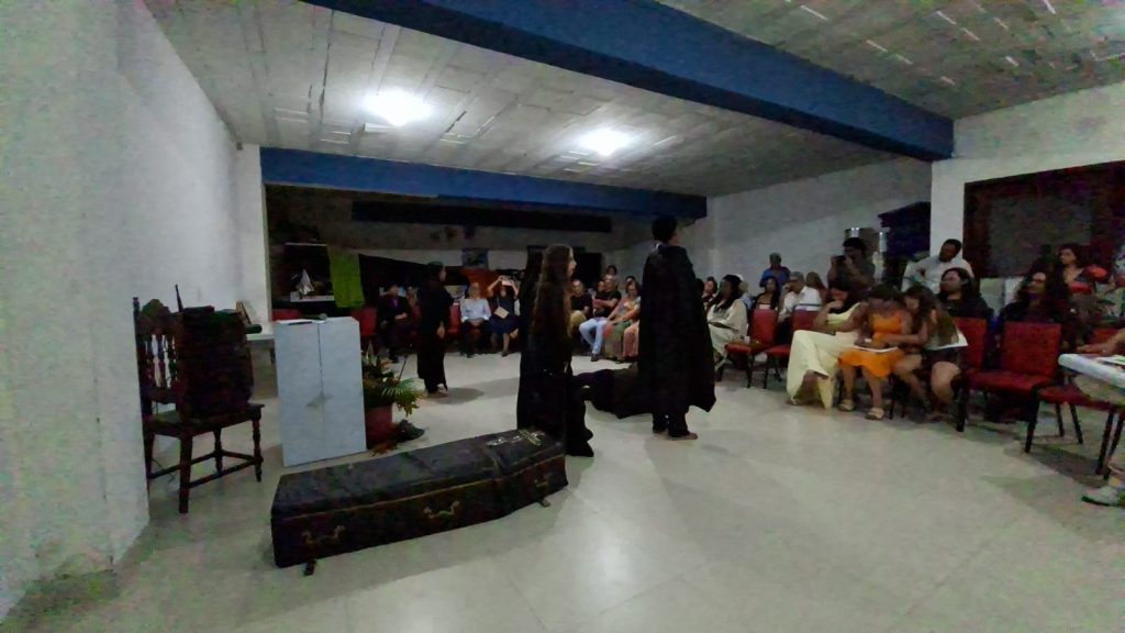 A poeta Ayê Akin apresentou uma performance intensa de Slam Poetry, destacando a força da palavra falada. Em seguida, a Cia de Teatro Prosopopeia emocionou o público com Eu e os Versos Íntimos de Augusto, inspirada no poema de Augusto dos Anjos.