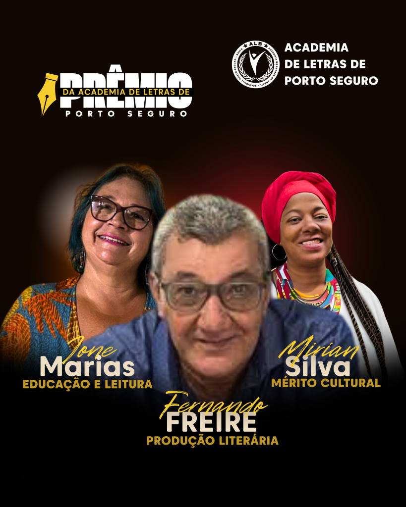 Cerimônia celebra os homenageados do Prêmio da Academia e apresenta os vencedores da primeira edição do Prêmio Literário Raimundo Costa A Academia de Letras de Porto Seguro realizará, na segunda-feira, 8 de dezembro, às 19h30, no CEMPEC, sua Sessão Solene dedicada a reconhecer e celebrar personalidades que contribuem para a literatura, a cultura e a educação da região. O evento marca um momento histórico para a ALPS: a entrega do Prêmio da Academia de Letras de Porto Seguro e a homenagem pública aos vencedores da primeira edição do Prêmio Literário Raimundo Costa, anunciados em outubro. PRÊMIO DA ACADEMIA Criado para reconhecer trajetórias que fortalecem a palavra, preservam memórias e transformam realidades, o Prêmio da Academia destaca três nomes cuja contribuição é incontestável: Produção Literária – Fernando Freire Dramaturgo, roteirista, diretor e escritor de sólida atuação, Fernando Freire representa a força criativa que atravessa teatro, cinema, rádio e literatura. Autor de obras encenadas em grandes palcos e de produções audiovisuais premiadas, registra ainda a alma de Porto Seguro em suas crônicas, reunidas em O Melhor do Gabiru. Sua trajetória reafirma o impacto da literatura como documento vivo da identidade regional. Mérito Cultural – Miriam Silva Pesquisadora, gestora e líder comunitária, Miriam Silva tem papel fundamental na valorização da cultura afro-brasileira no município. Co-criadora da Semana Literária de Porto Seguro — o terceiro evento literário mais antigo da Bahia —, ela ampliou o acesso a projetos culturais, incentivou autores e fortaleceu ações de igualdade racial. Sua atuação no Instituto Sociocultural Brasil Chama África e no Centro de Cultura consolidou um legado de transformação e mobilização cultural. Educação e Leitura – Ione Maria Bittencourt Educadora referência no município, Ione desenvolveu inúmeros projetos pedagógicos inovadores, muitos deles integrando teatro, leitura e cultura popular. Sua atuação defendeu a presença da capoeira e da cultura afro-brasileira nas escolas e, por meio da Casa da Amizade, promoveu atividades culturais e de incentivo à leitura que impactaram crianças e famílias. Ione reafirma o papel da literatura como caminho de emancipação e pertencimento. PRÊMIO RAIMUNDO COSTA O Prêmio Raimundo Costa nasce com a missão de estimular novos escritores e valorizar a produção literária inspirada na história, na memória e na identidade de Porto Seguro. Em sua primeira edição, dedicada exclusivamente à poesia, os vencedores são: VENCEDORES MENÇÕES HONROSAS A Coletânea de Poemas do Prêmio Raimundo Costa será lançada em 2026, reunindo as obras vencedoras e selecionadas para perpetuar esta iniciativa que já nasce como referência literária local. “O Prêmio Raimundo Costa revela novas vozes que enriquecem nossa memória literária, enquanto o Prêmio da Academia reconhece aqueles que transformam educação, cultura e palavra em legado vivo para Porto Seguro. Celebramos com essas premiações não apenas vencedores, mas o futuro da literatura que construímos juntos.” Rod Pereira – Presidente da Academia de Letras de Porto Seguro Compromisso com a literatura, a cultura e o futuro Ao celebrar estes prêmios, a Academia de Letras de Porto Seguro reafirma seu compromisso em fortalecer a produção literária regional, incentivar novos talentos e reconhecer trajetórias que fazem da palavra um instrumento de memória, identidade e transformação. SERVIÇO Sessão Solene da Academia de Letras de Porto SeguroEntrega do Prêmio da Academia de Letras e celebração do Prêmio Literário Raimundo Costa📅 Segunda-feira, 8 de dezembro🕒 19h30📍 CEMPEC – Av. Pero Vaz de Caminha, ao lado da Câmara de Vereadores🎟 Entrada gratuita